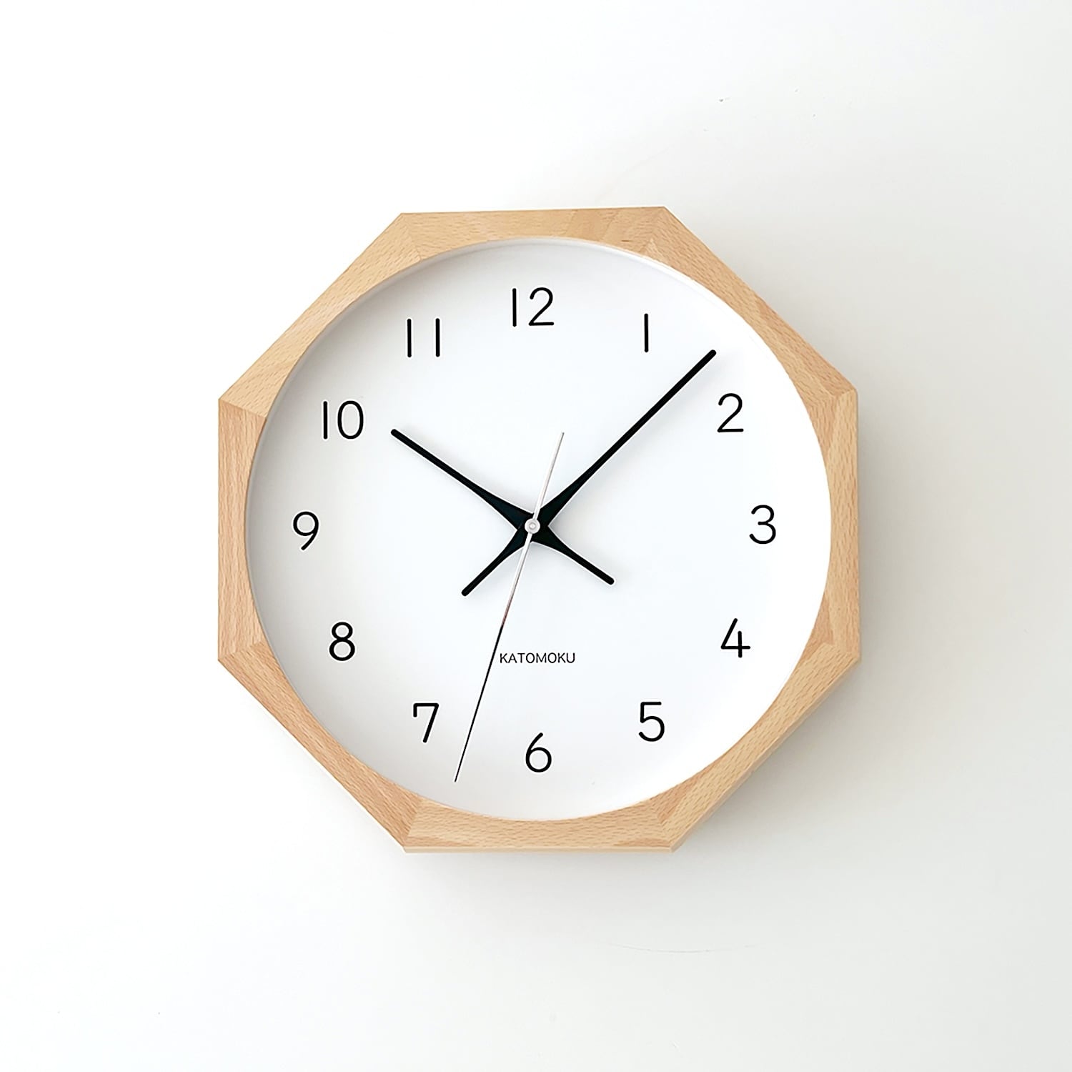 サイズ:Φ300×50mm 材 質:ビーチ、ガラス、MDF カラー:ナチュラル 重 量:850g 仕 様:八角形木枠、連続秒針ムーブメント 付属品:取扱説明書、保証書、単3電池、壁掛け用木ネジ 備 考:ムーブメントは、クォーツ、電波、SKPクォーツ、SKP電波の 4種類からお選びくださいませ。 商品購入後の変更は、いたしかねますので予めご了承くださいませ。 ムーブメントの種類 https://katomoku.jp/feature/clockmovement.html でご確認くださいませ。