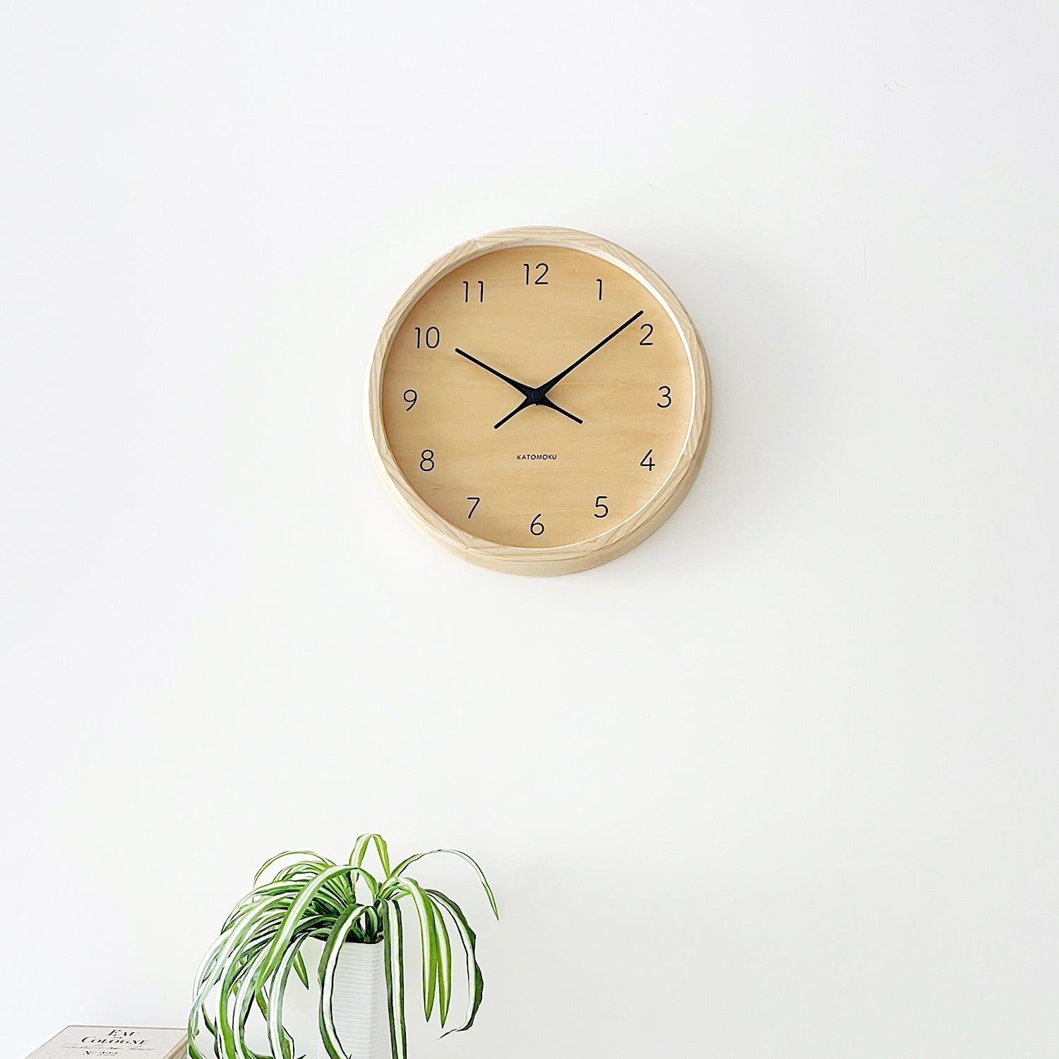 サイズ:Φ300×50mm 材 質:ホワイトアッシュ、ガラス、シナベニヤ カラー:ナチュラル 重 量:850g 仕 様:スイープムーブメント(連続秒針) 付属品:取扱説明書、保証書、単3電池、壁掛け用木ネジ 備 考:ムーブメントは、クォーツ、電波、SKPクォーツ、SKP電波の 4種類からお選びくださいませ。 商品購入後の変更は、いたしかねますので予めご了承くださいませ。 ムーブメントの種類 https://katomoku.jp/feature/clockmovement.html でご確認くださいませ。