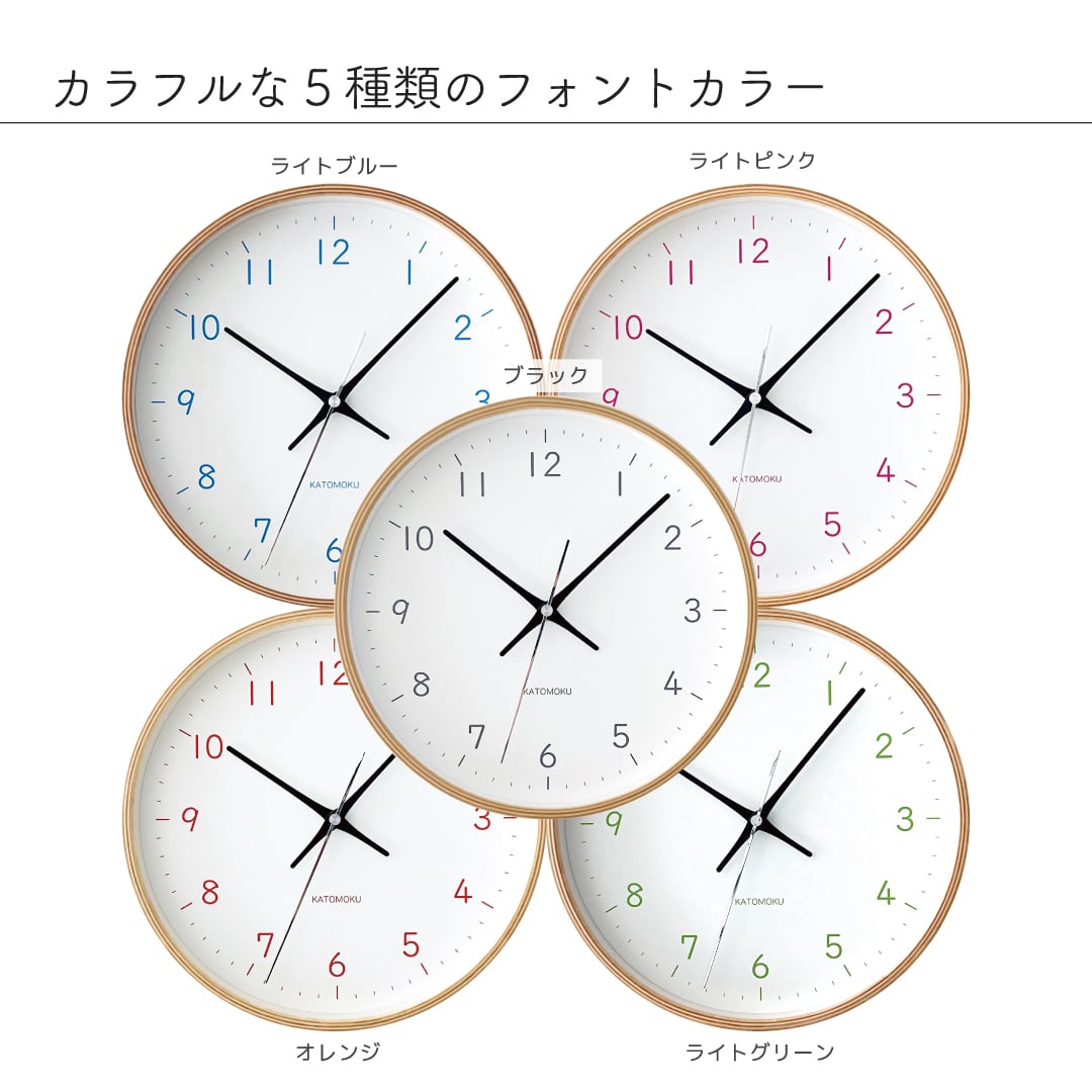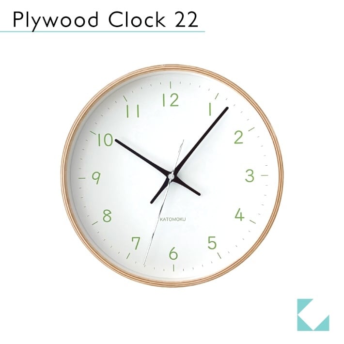 サイズ:Φ252×50mm 重 量:600g 材 質:シナベニヤ、ガラス、MDF カラー:ライトグリーン 仕 様:スイープムーブメント(連続秒針) 付属品:取扱説明書、保証書、単3電池、壁掛け用木ネジ 備 考:ムーブメントは、クォーツ、電波、SKPクォーツ、SKP電波の 4種類からお選びくださいませ。 商品購入後の変更は、いたしかねますので予めご了承くださいませ。 ムーブメントの種類 https://katomoku.jp/feature/clockmovement.html でご確認くださいませ。