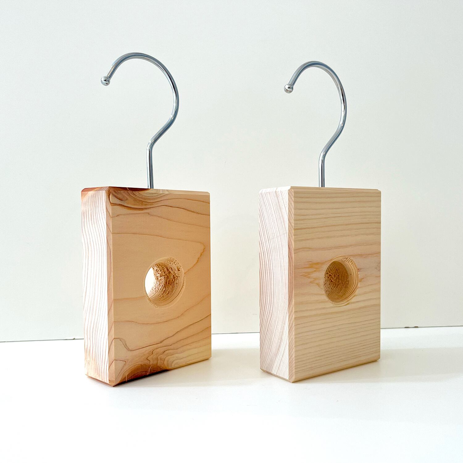 KATOMOKUゲタの端材から生まれた防虫ハンガー。