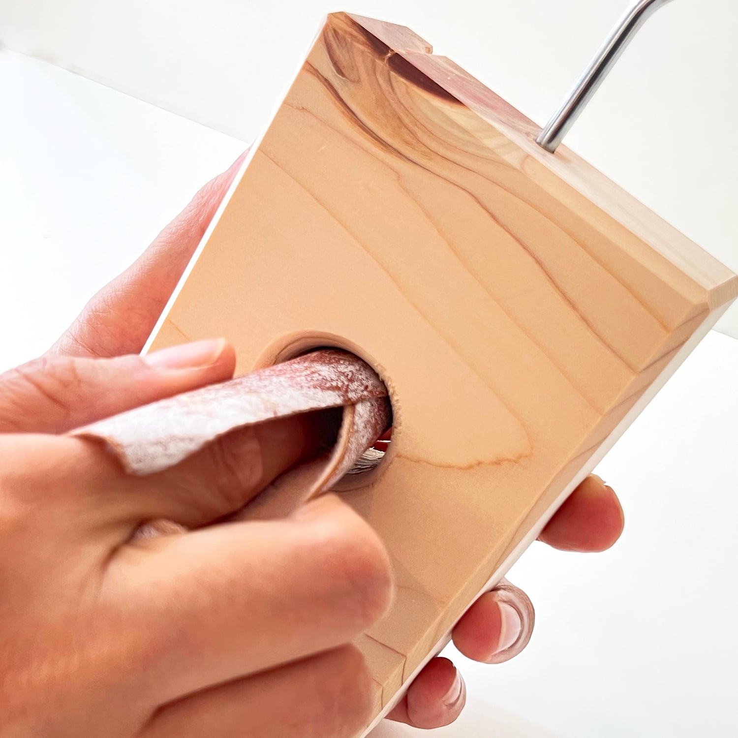 香りが弱くなったら、付属の紙やすりで、穴を磨いてください。
